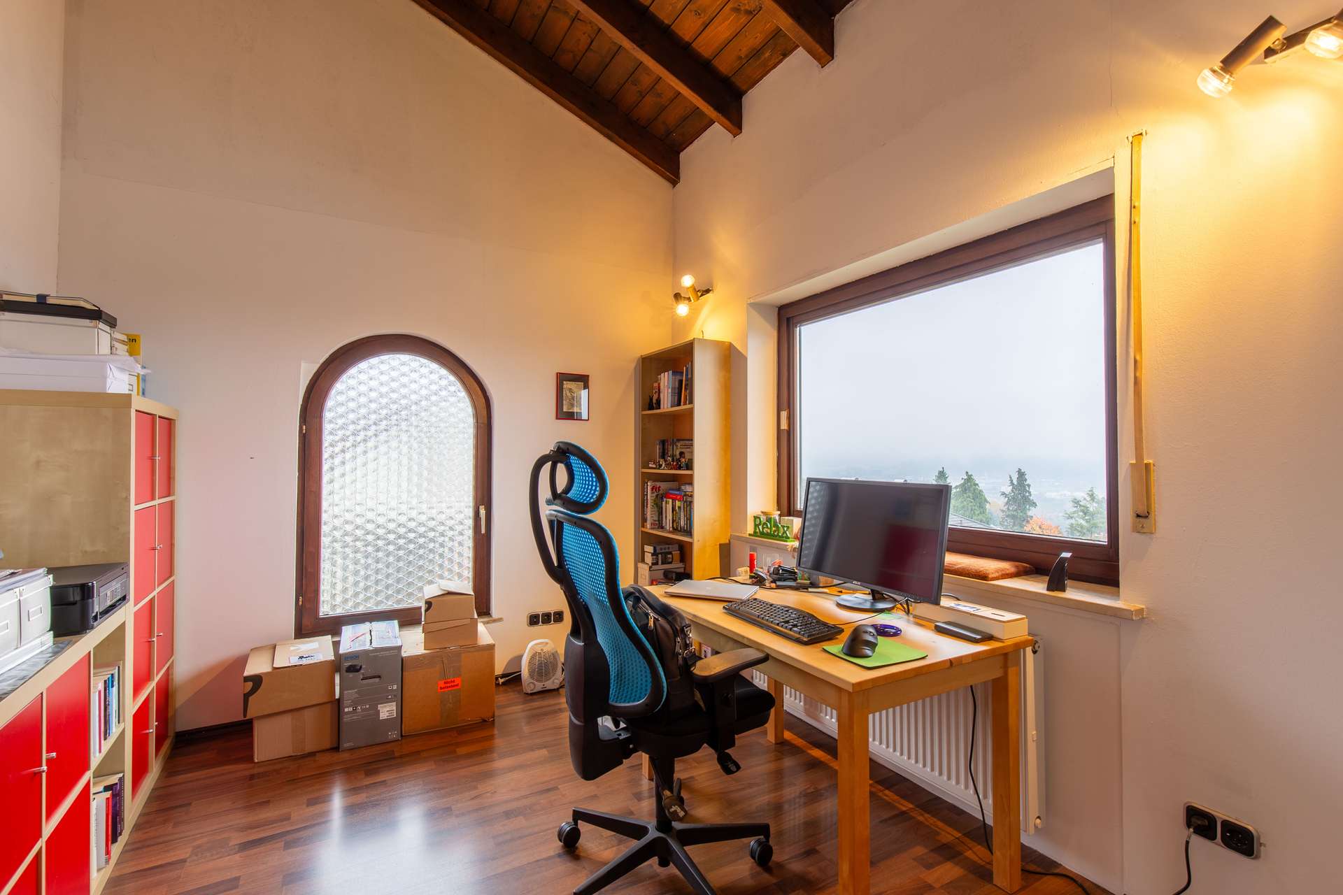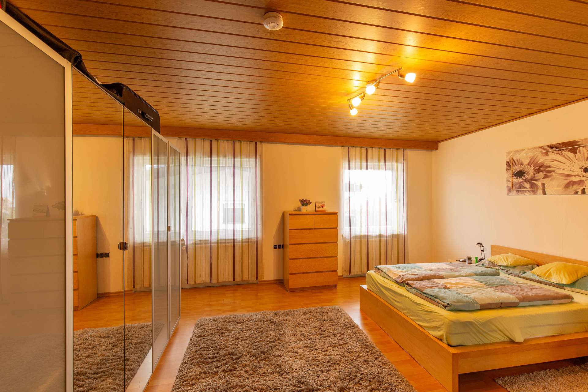 Im Dachgeschoss befindet sich ein zusätzliches Wohnstudio mit rund 20 m², das sich hervorragend als Hobbyraum, Gästezimmer, Büro oder Rückzugsort eignet. Ein kleiner Balkon mit schöner Aussicht betont die besondere Wohnqualität des Hauses.