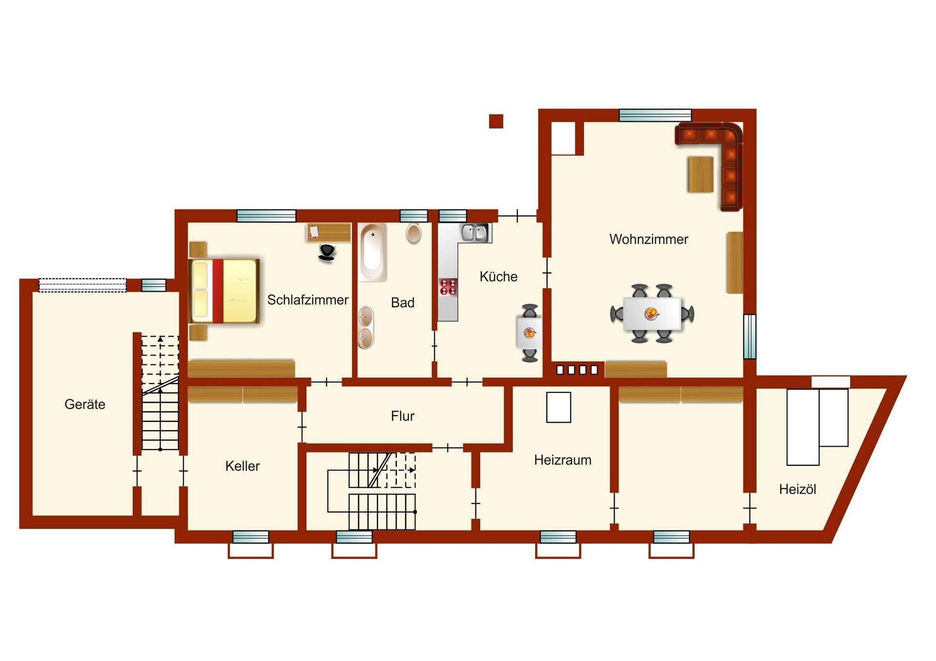 Die Wohnung im Erdgeschoss steht aktuell leer und kann sofort selbst genutzt oder neu vermietet werden. Die Einliegerwohnung im Untergeschoss ist weiterhin vermietet und erwirtschaftet monatlich 250 € Kaltmiete zzgl. 140 € Nebenkosten.