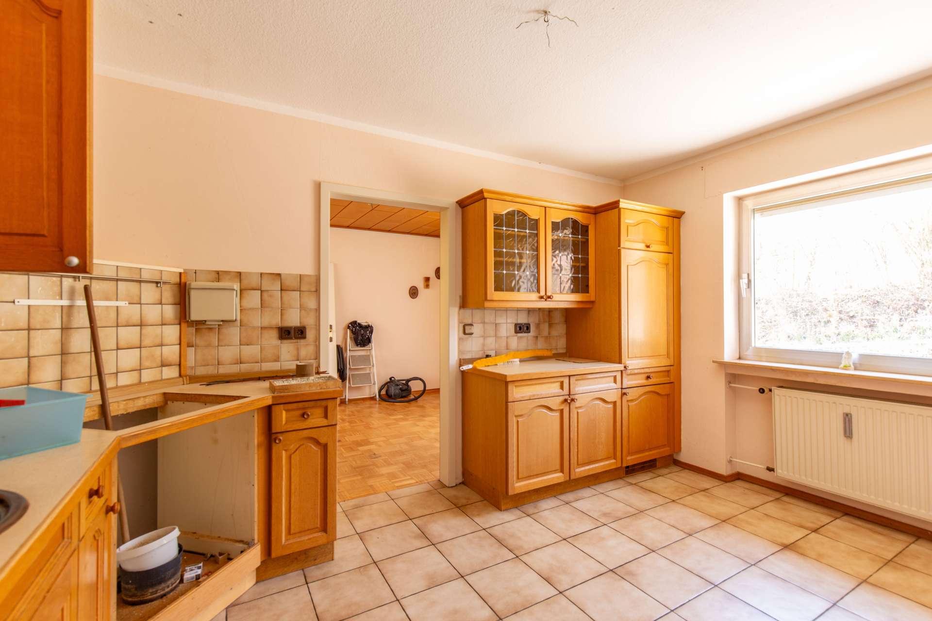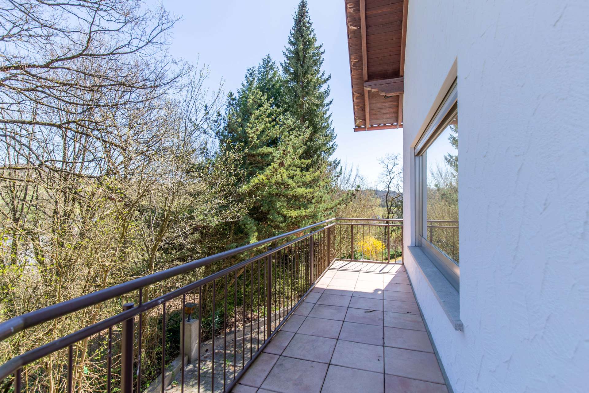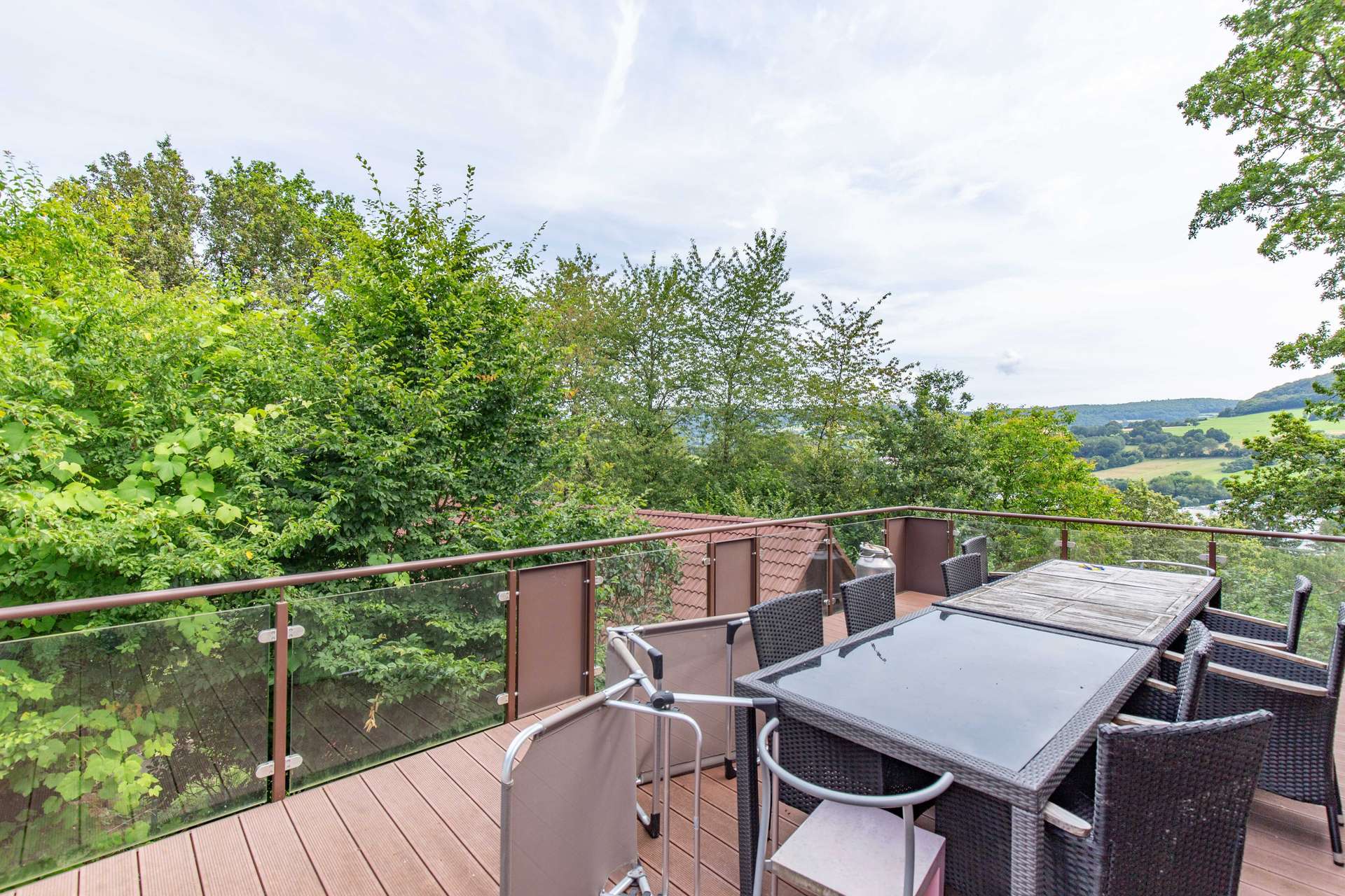 Wohnzimmer, Schlafzimmer, Küche, Abstellraum, Besenkammer, Bad, separates WC und eine großzügige Terrasse mit traumhaftem Blick über das Sinntal – ein echtes Highlight des Hauses.