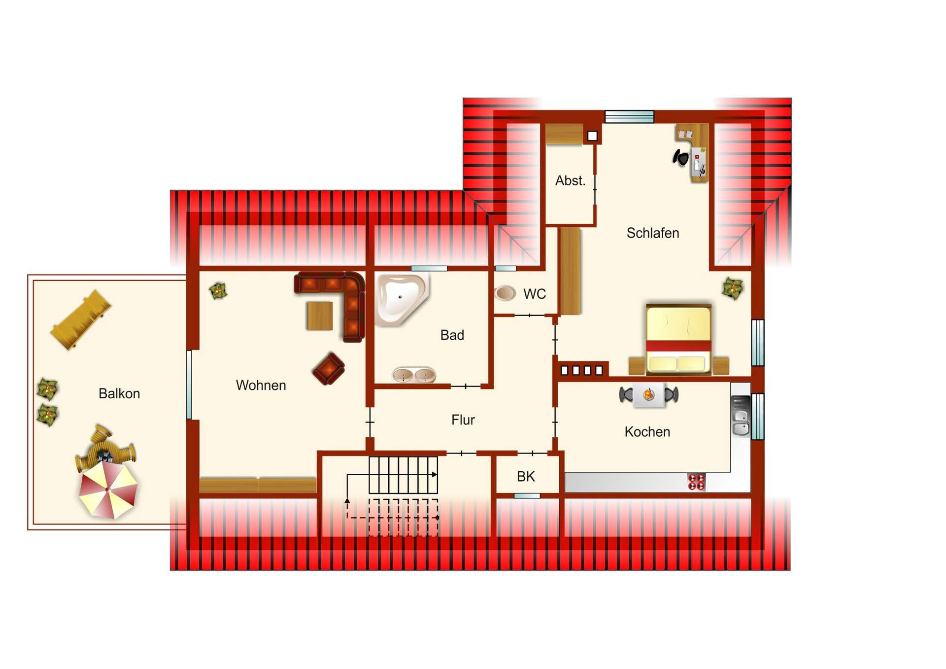 Das Dachgeschoss wird derzeit vom Eigentümer bewohnt. Im Rahmen des Verkaufs ist geplant, dass er weiterhin im Haus wohnen bleibt. Die Details hierzu – ob durch Mietzahlung oder anderweitige Vereinbarung – können gerne im persönlichen Gespräch geklärt werden.